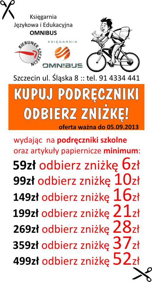 17/07/2013Szczecin, księgarnia, podręczniki, tanie podręczniki, rabat na podręczniki, kupon rabatowy, wyprawka szkolna, Omnibus, promocje, księgarnia szkolna, księgarnia językowa, księgarnia edukacyjna, w Szczecinie